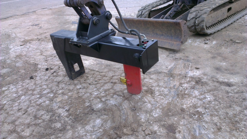 costruzione spaccalegna idraulico per miniescavatore / escavatore con apertura 730mm al cuneo e 800 mm. alla lama, pressione di lavoro 200 bar, completo con sella d'attatto a disegno per l'escavatore, forza di spinta del cilindro 25 ton., attrezzo conforme, con certificazione C.E. rilasciata dall'ente preposto
